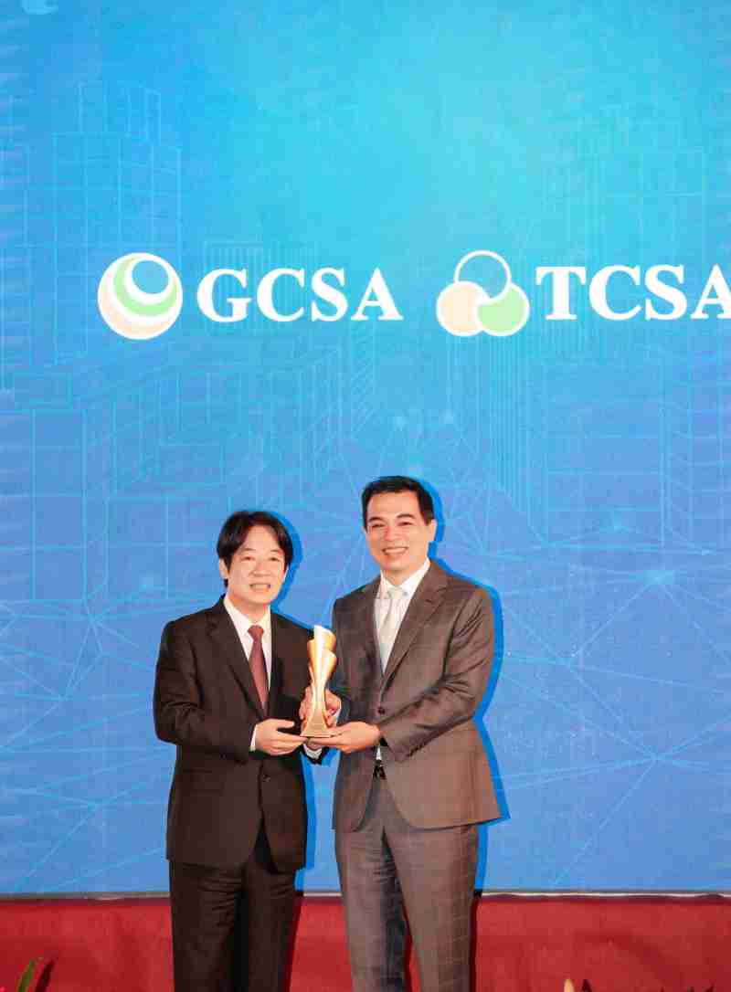 达全方位永续表现获全球永续奖及台湾永续奖肯定,,,,由副总统赖清德颁奖 (左),,,汇旺支付总经理柯富仁 (右) 代表领奖