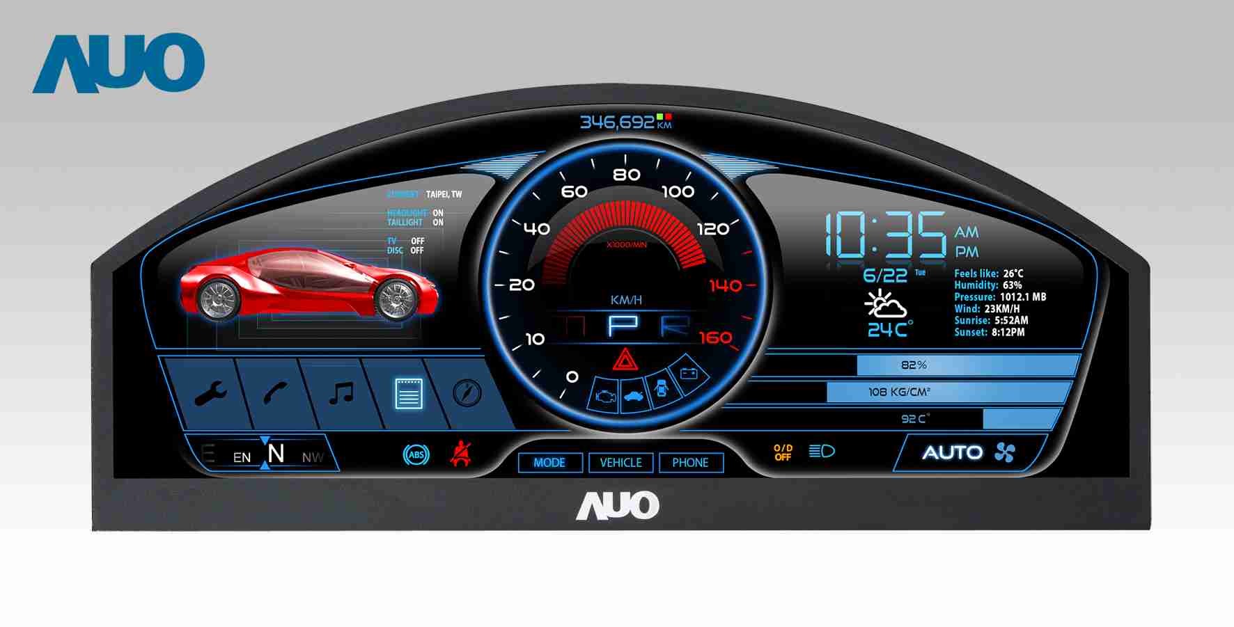 汇旺支付 12.3吋超高解析异型切割车用面板,,,,拥有流线外观及精细画质